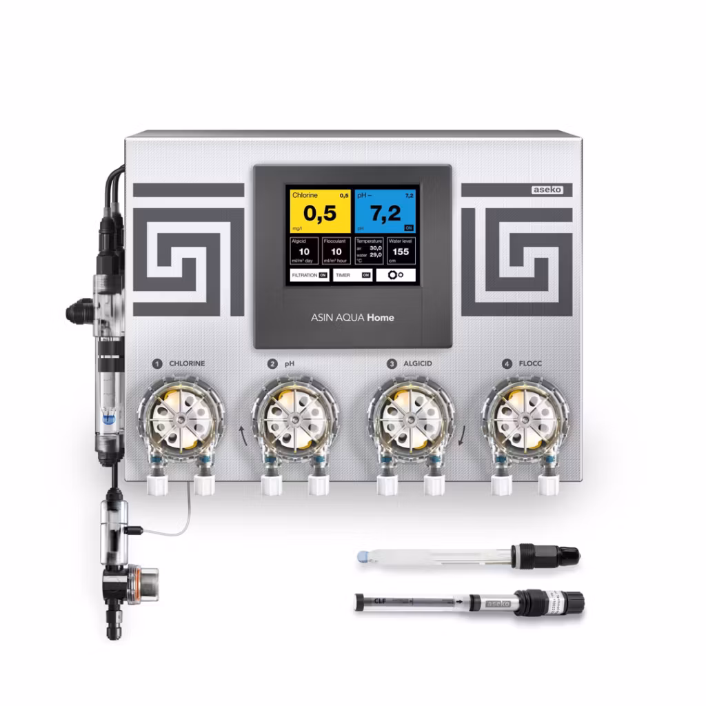 ASEKOS lyxenhet ASIN AQUA Home CLF VS är den ultimata lösningen för poolägare som vill njuta av sitt poolliv utan krångel. Med detta innovativa doserings- och kontrollsystem behöver du inte längre bekymra dig om vattenkvaliteten eller kemikaliehanteringen – ASIN AQUA Home CLF VS tar hand om allt åt dig.