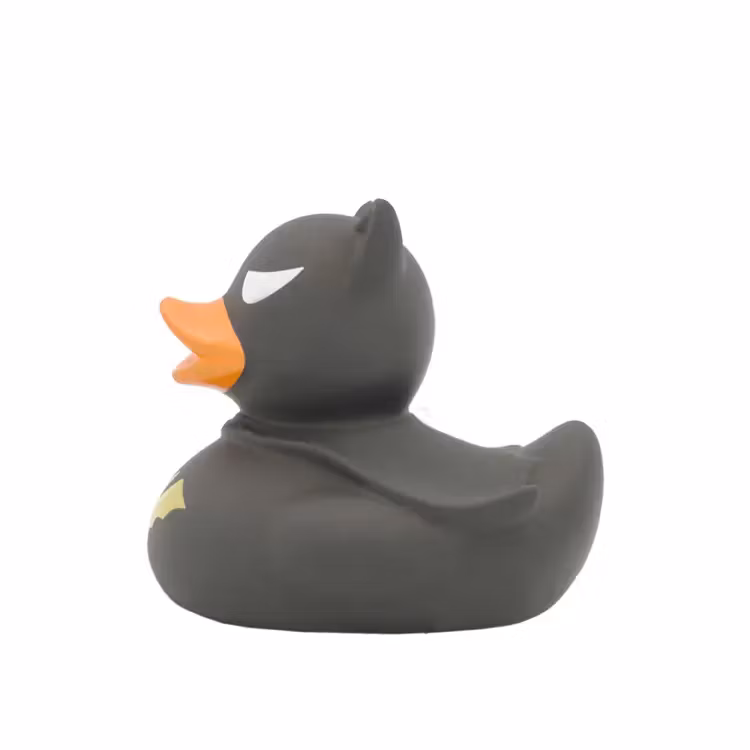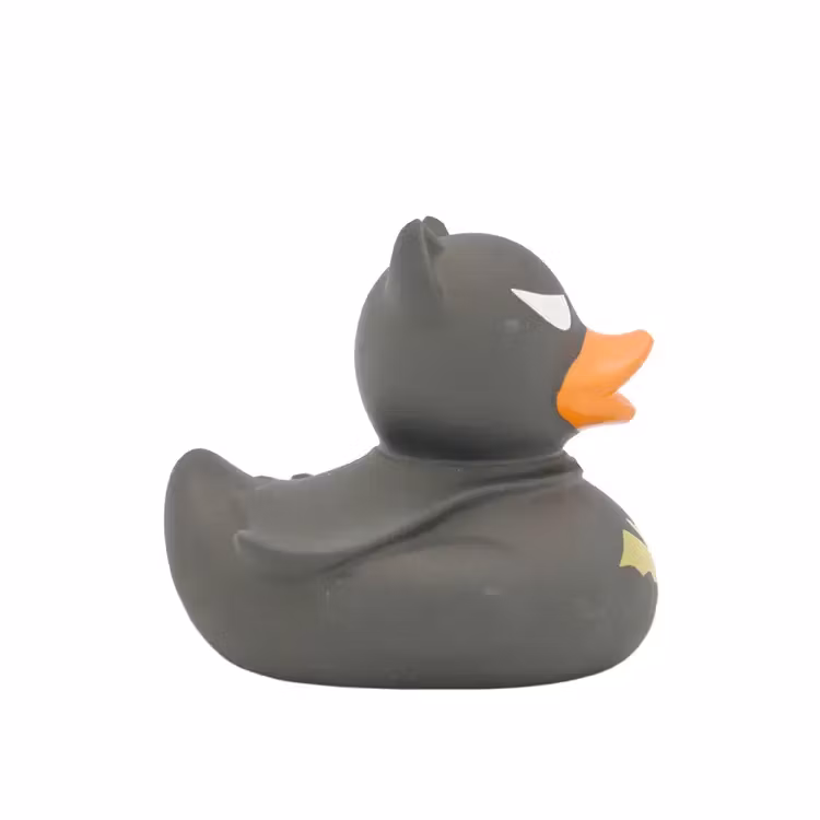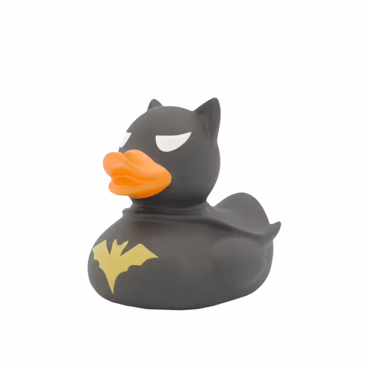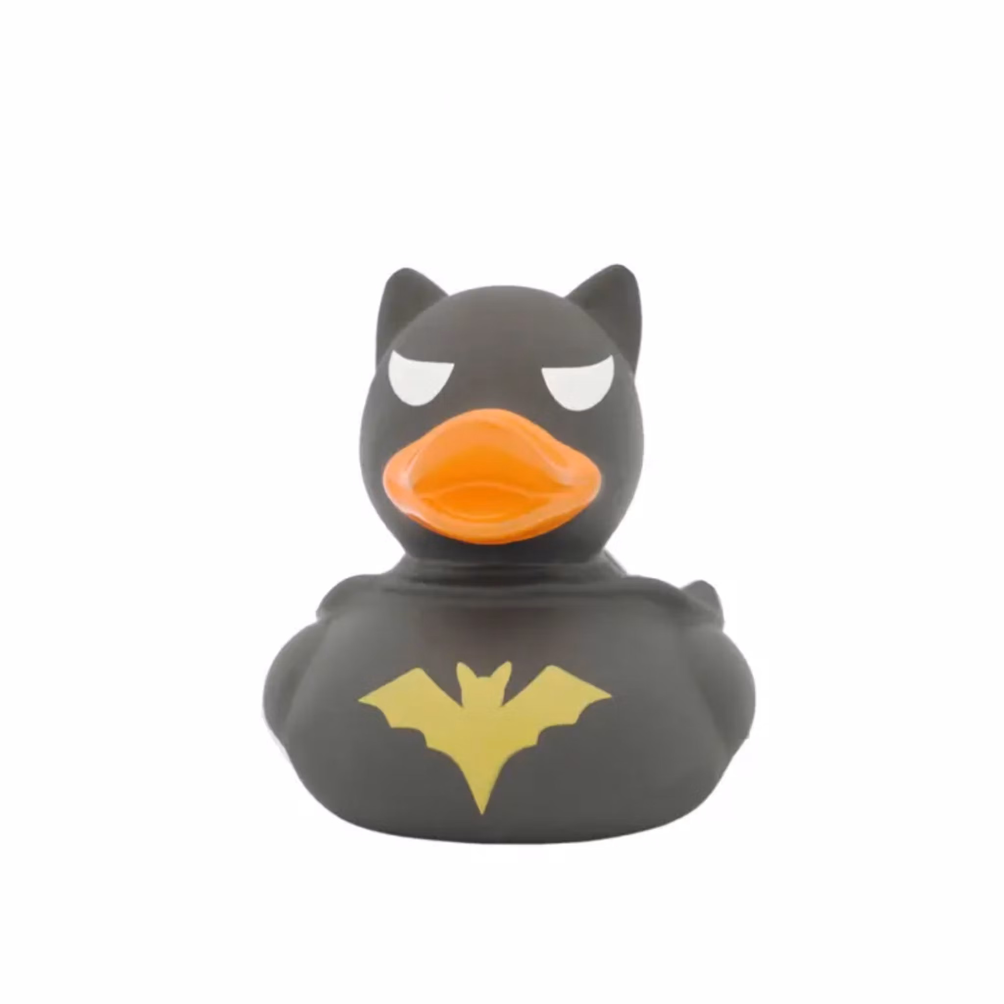 Denna badanka har måtten ca 8,5 x 7,5 x 8,5 cm och är en rolig och unik tillägg till din badleksaksamling. Med sin mörka och mystiska design, är den redo att bekämpa brott och rädda badandets dag.