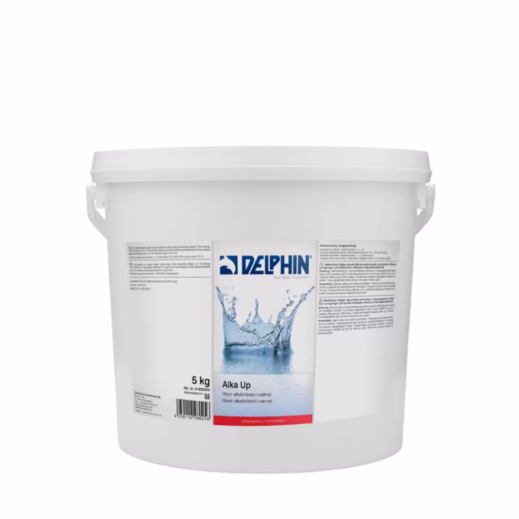 Håll pool- och spavatten i perfekt balans med Delphin Alka Up Granulat, en effektiv lösning för att höja alkaliniteten till idealiska nivåer (80–120 ppm). Rätt alkalinitet är avgörande för att bibehålla en stabil pH-nivå, vilket i sin tur skyddar poolens material, förbättrar desinfektionseffekten och ger en behagligare badupplevelse.