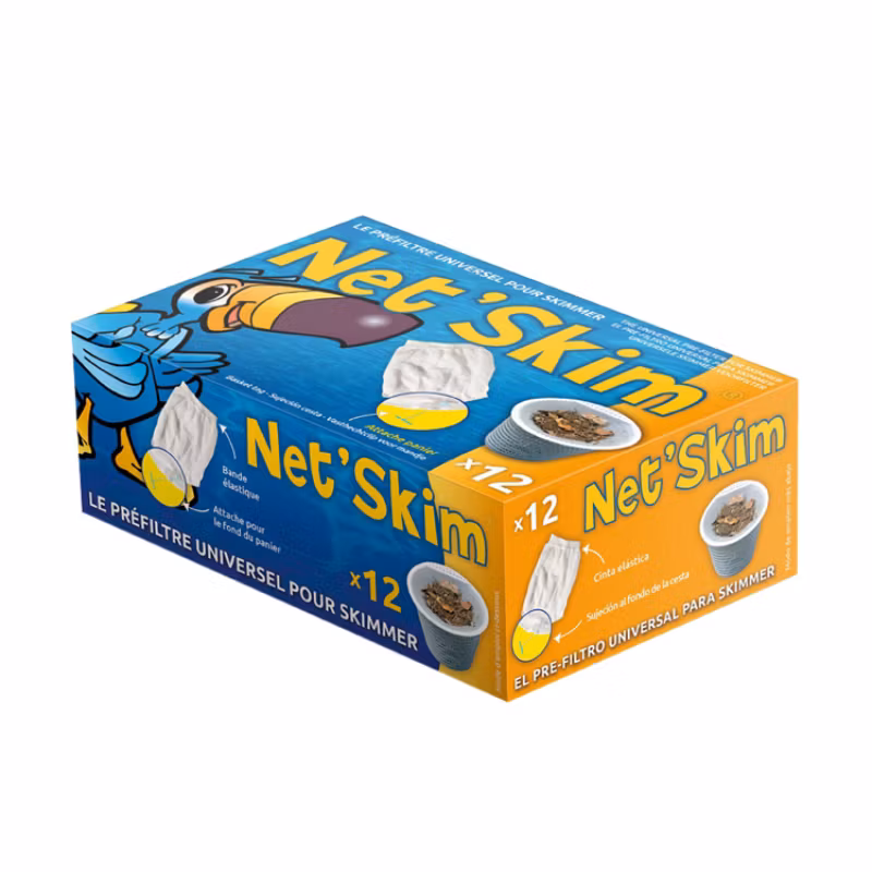 Net Skim är lätt att installera och placeras enkelt över silkorgen i poolens bräddavlopp. På så sätt samlar filterpåsen upp smuts och föroreningar som annars skulle ha belastat sandfiltret. Varje förpackning innehåller 12 filterpåsar, vilket garanterar en längre livslängd för din sandfilterpump och minskar behovet av underhåll.