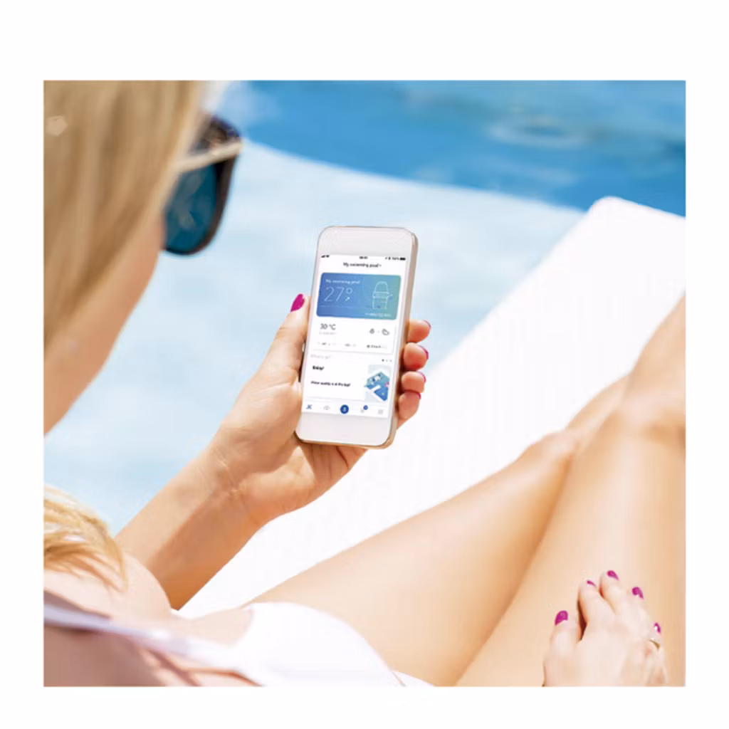 Med hjälp av appen kan du få anpassade råd och notiser när åtgärder behövs, så att du kan optimera användningen av kemikalier och hålla ditt vatten i perfekt balans. Blue Connect Plus är lätt att installera, antingen direkt på röret i teknikutrymmet med den medföljande Blue Fit 50, eller som en flytande enhet i vattnet.